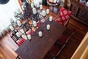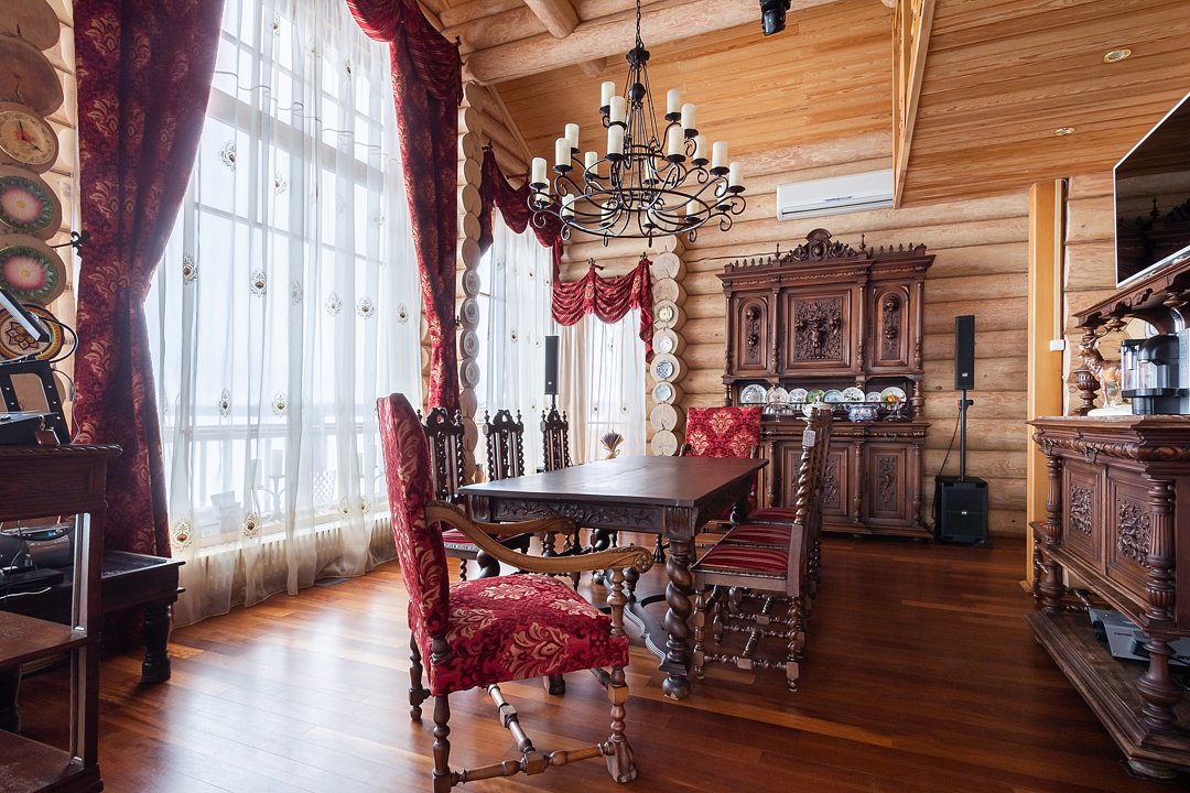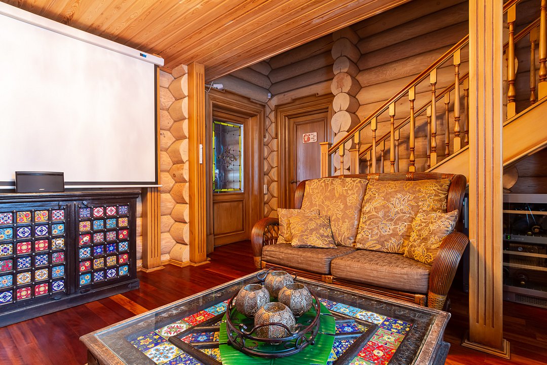 Для приема гостей — парадный зал на двенадцать человек и полностью оборудованная кухня с посудой и бытовой техникой, столовая посуда для торжеств; есть комната отдыха с большим проектором, массажная и раздевалка, санузел и две душевые, кондиционер и Wi‑Fi.