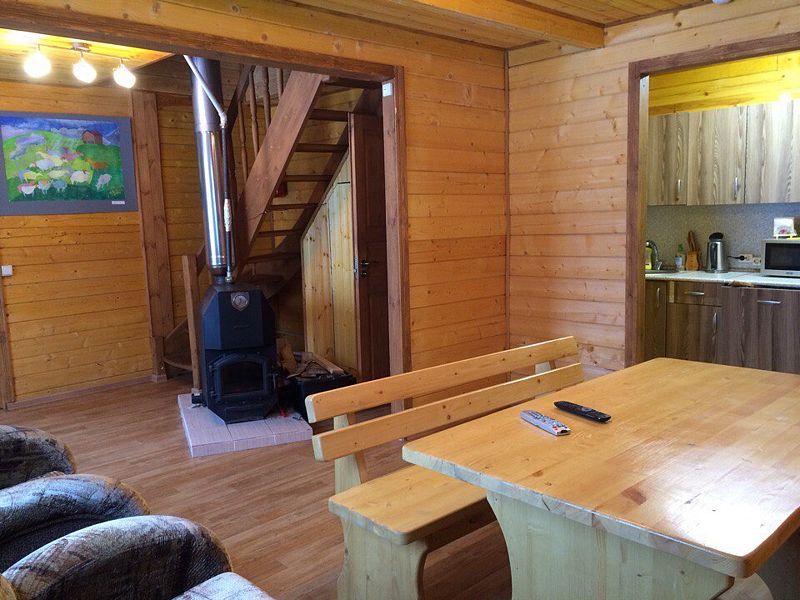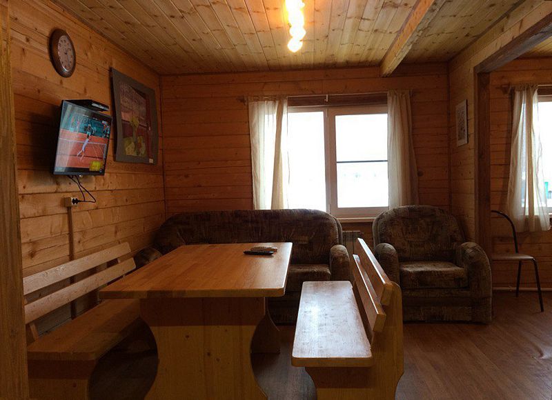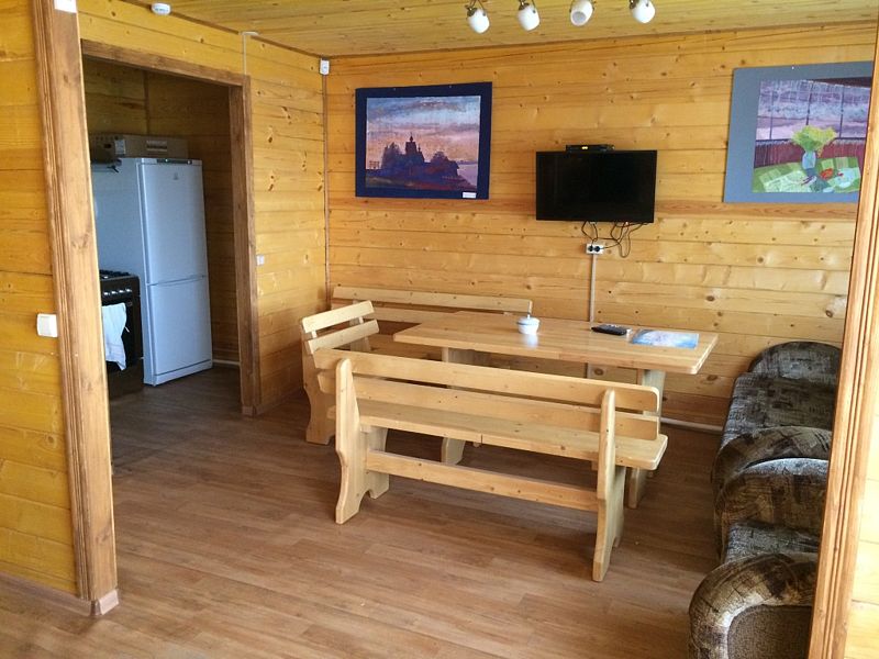 В коттедже имеются три комнаты, рассчитанные на размещение 5 гостей: две комнаты с видом на реку, одна - с видом на лес. Кухня оборудована всей необходимой бытовой техникой. Имеются два дополнительных спальных места. горячая вода круглосуточно.