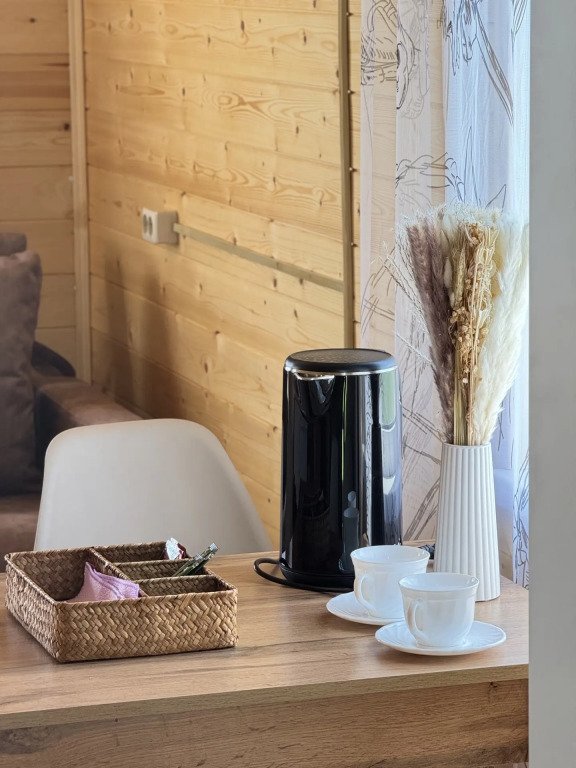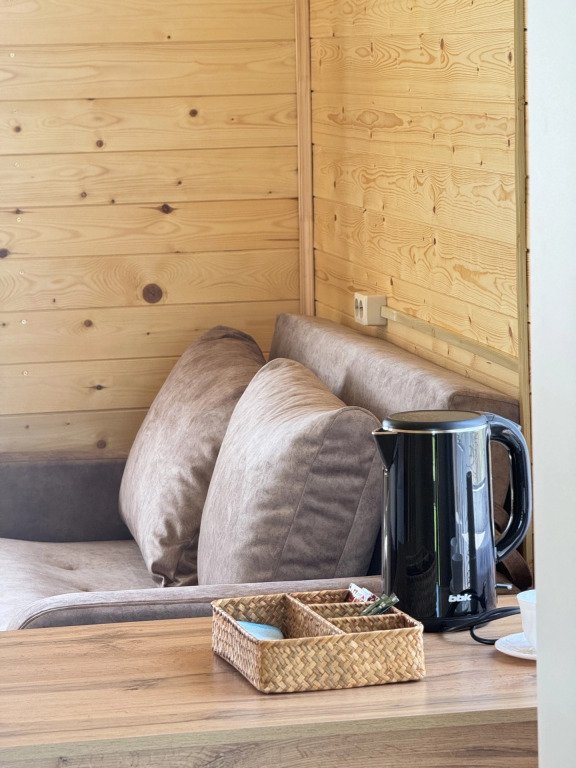 Для размещения доступны 10 домиков, возможно проживание до 5 человек в каждом.