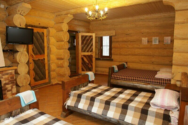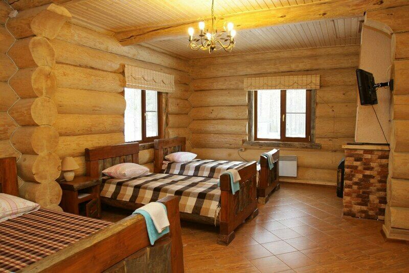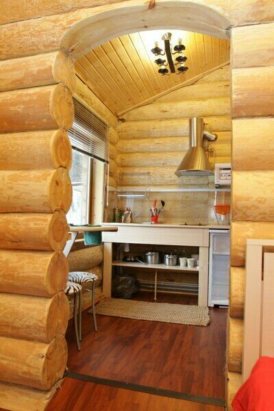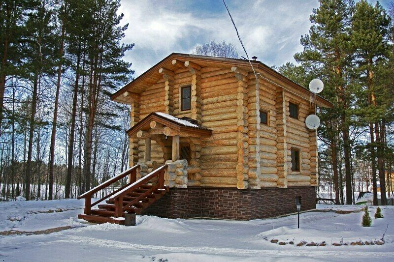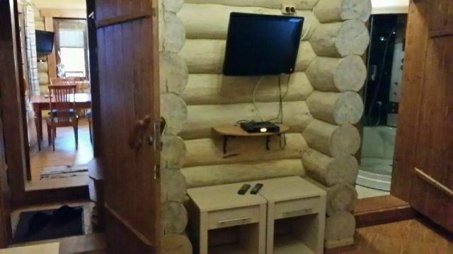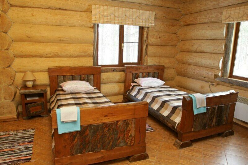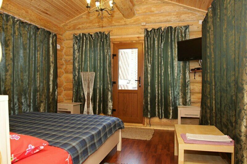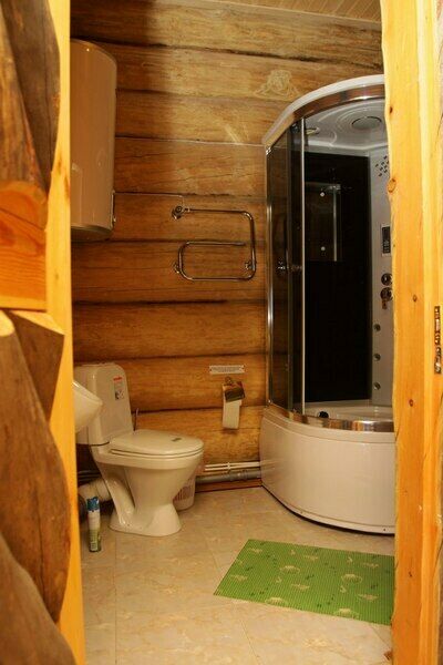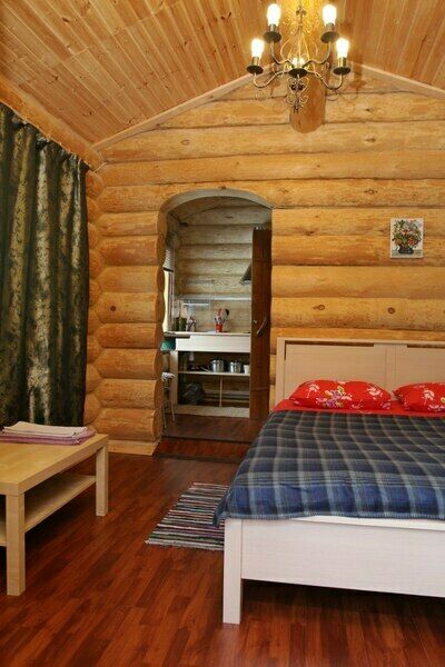 Небольшой двухместный коттедж из бревна. Мини кухня (свч, чайник, холодильник, плита), ТВ, полный санузел, двуспальная кровать.