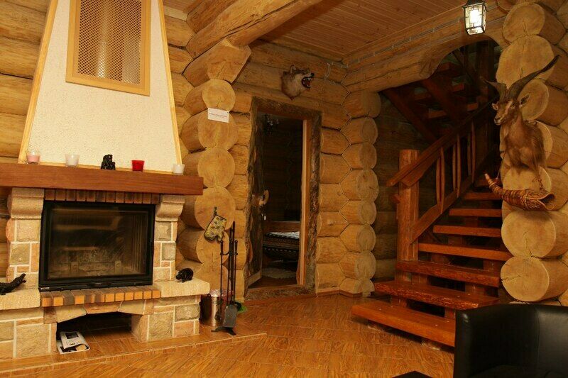 2 номер — 2-комнатный с камином, столовая (кухня + диван), спальня, санузел, душ.