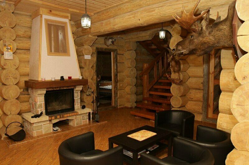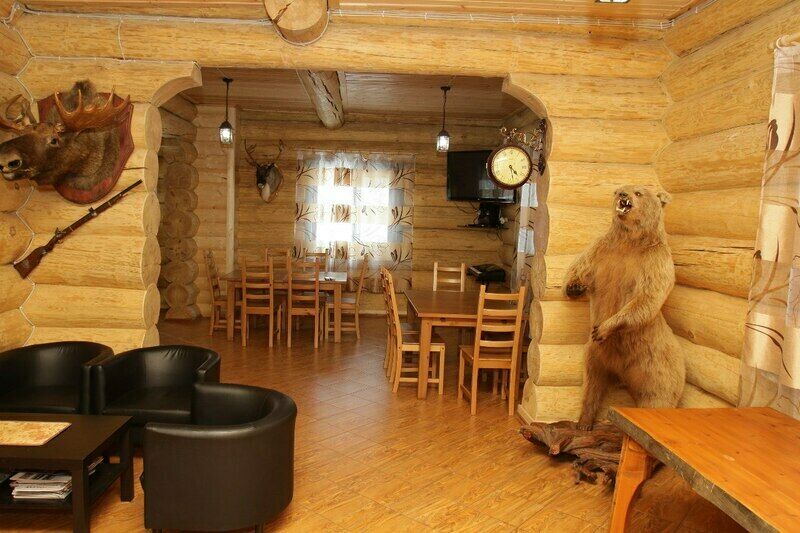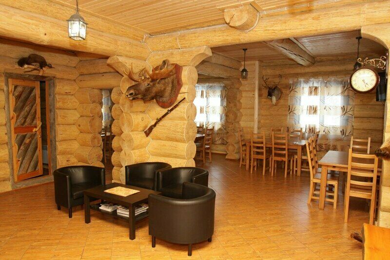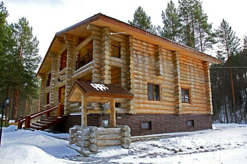 С номерным фондом, большая гостиная для банкетов и проведения теплых вечеров у камина. Бильярд. Построен из сосны, возраст которой около 200 лет. В каждом номере санузел, теплые полы, спутниковое ТВ, кровати из массива дерева (вес каждой кровати 500 кг). В Основном доме находится кафе рассчитанное на 30 мест, каминный зал, балкон с видом на оз. Сямозеро.