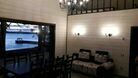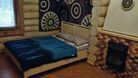 Первый этаж — кухня, столовая, камин, ТВ, полный санузел. Второй этаж — двуспальная кровать и две односпальных кровати. Третий этаж — двуспальная кровать, диван.