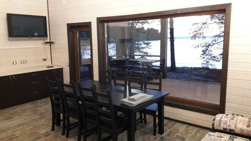 Приглашаем на отдых в домики на берегу Пряжинского озера, 40 км от Петрозаводска, 400 км от Санкт-Петербурга. В доме одна спальня с 2-х спальной кроватью, кухня с бытовой техникой и посудой. Санузел, душ. В доме обогрев "Теплый пол", это значит, что вы будете комфортно чувствовать себя и без тапочек. В доме два панорамных окна, одно выходит на озеро, второе на сказочный сосновый лес, где можно с подсветкой любоваться природой даже ночью.
