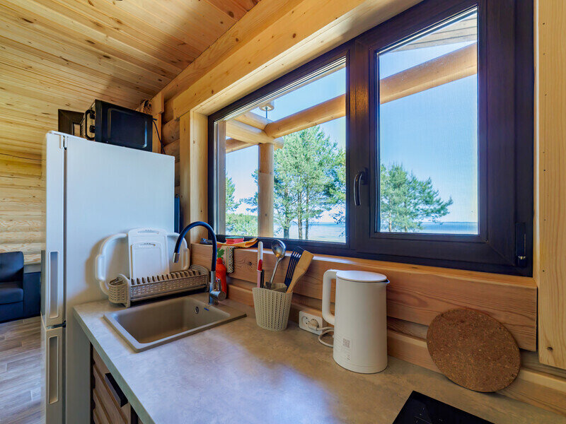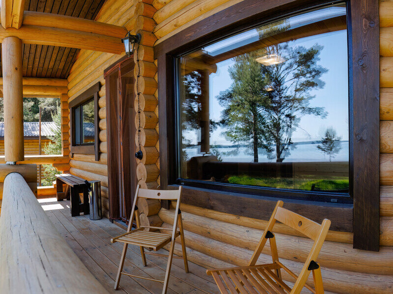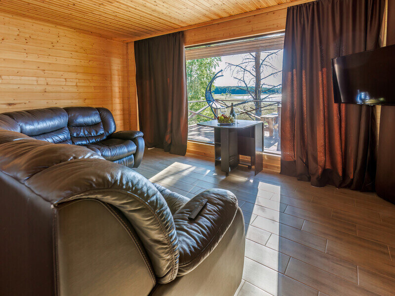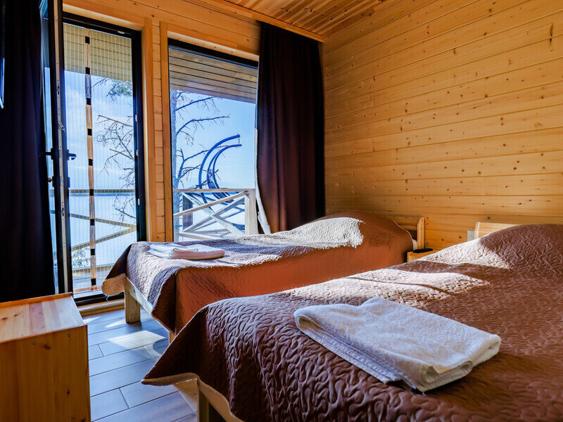 - Номера новые, обшиты деревом, с большим панорамным окном с видом на озеро. Есть душ хорошая ванная комната со всеми удобствами. В номере плоский телевизор со спутниковым телевидением, есть розетки у кроватей, фумигатор, сейфа нет. Уборка по просьбе.