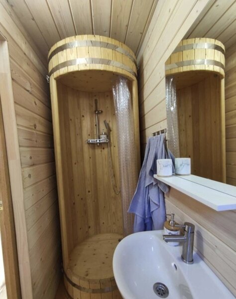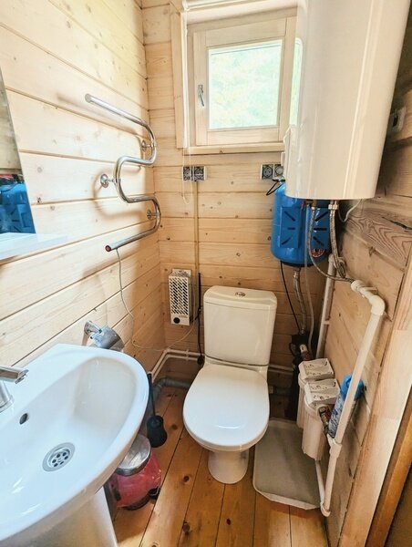 Санузел в доме (туалет, душевая кабина из натурального дерева), терраса 14 м2.