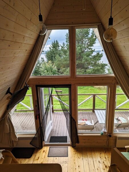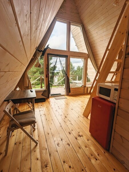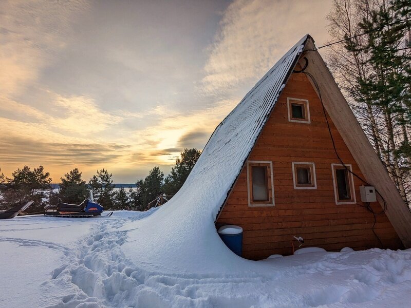 Дом постройки 2022 года A-frame с шикарным видом на озеро Сямозеро. Сосновый лес. До песчаного пляжа 15 минут ходьбы.