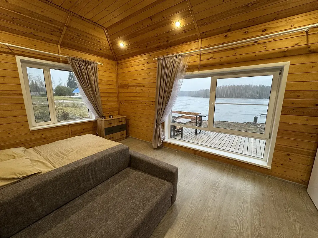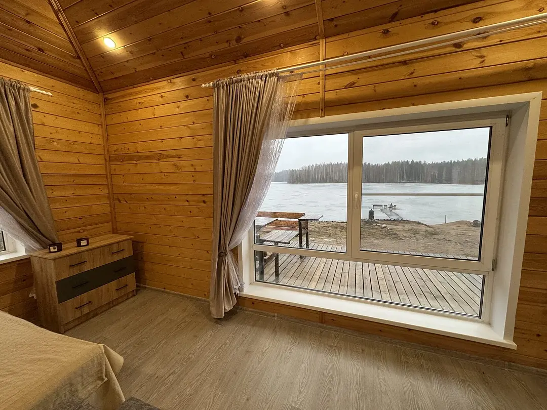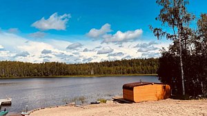 На берегу озера стоит русская баня на дровах — идеальное место для расслабления. После парения гости могут освежиться в кристально чистых водах озера.