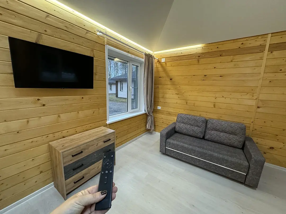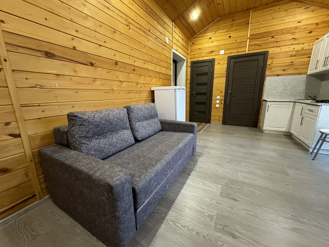 В домике для вас: собственная терраса с мебелью для отдыха на улице, двуспальная кровать с ортопедическим матрасом и свежим постельным бельем, двухместный раскладной диван, душевая, туалет, раковина, средства гигиены и свежие полотенца.