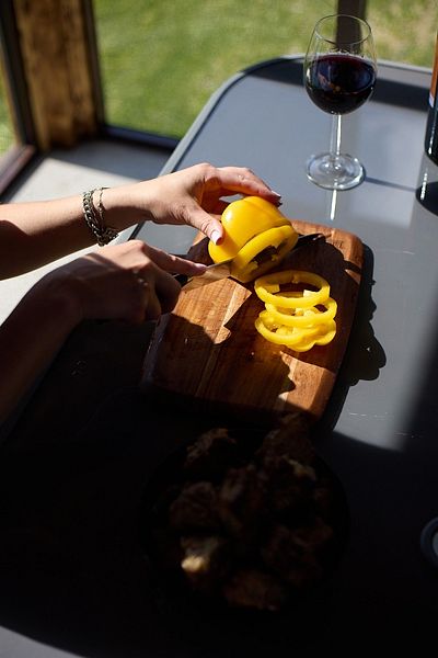 Есть возможность самостоятельной готовки, пользования застекленной мангальной беседкой с панорамным видом и оборудованной зоной для отдыха на свежем воздухе.