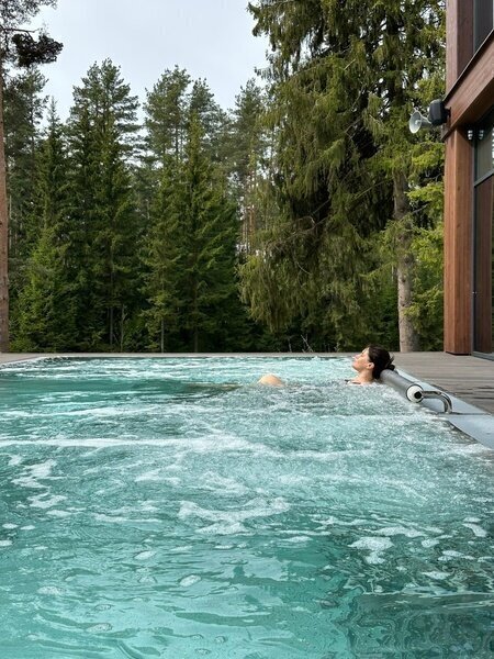 Читать полностьюОткрытый бассейн, оборудованный системой подогрева воды, идеален для любителей плавания вне зависимости от сезона. Его максимальная глубина позволяет полностью погрузиться в воду, сохраняя комфортную температуру. Перед заплывом можно согреться в финской сауне, входящей в бассейный комплекс.