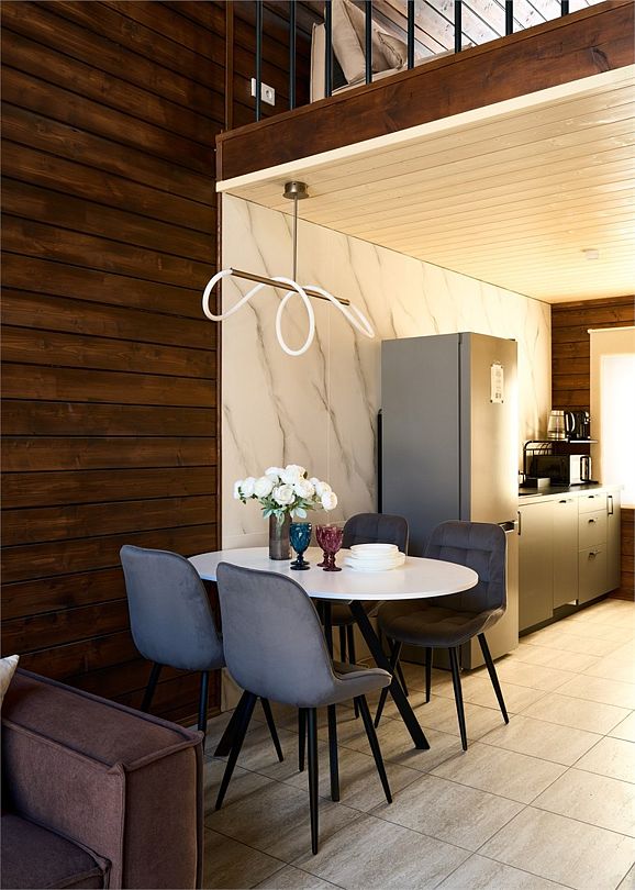 Barnhouse 1 - это отличное решение для тех, кто ценит уют и современный дизайн. В доме одна спальня обеспечивающие комфортный сон. Просторная гостиная, объединенная с кухней, создает идеальное пространство для общения с семьей. Дом идеально подходит для отдыха с друзьями и близкими. Здесь Вы можете насладиться тишиной и спокойствием природы, а также расслабиться в банном чане*, который находится на территории дома. ❕На базе отдыха можно заказать завтрак, обед и ужин из ресторана*; Скоростной интернет 100 мб Wi-Fi в каждом доме; Брендированные халаты можно взять в аренду за дополнительную плату; Мангальная зона, шампуры предоставляются бесплатно, а уголь,решетка и розжиг* не надо везти с собой, это можно приобрести. А что бы Ваш досуг был еще более приятным и интересным Вы можете: - устроить пикник на природе или на берегу Ладожского озера; - Искупаться в озере и посетить песчаный пляж. - расслабиться в горячем чане* наполненном цитрусами и еловыми ветками (наполнение чана на выбор*); - воспользоваться нашими дополнительными программами* (День рождения, романтик)*. Более подробную информацию можно узнать у менеджера бронирования +7(981) 862-17-77. Приезжайте к нам в гости! Мы уверены, что Ваш отдых у нас будет незабываемым и полон приятных впечатлений! Залог 5.000 руб. Заезд и выезд бесконтактный.Услуги и удобства