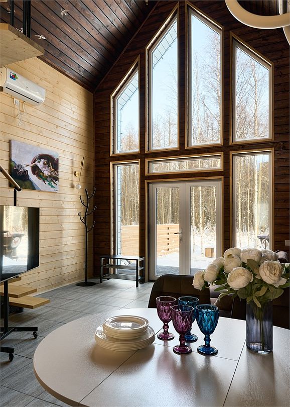 Wi-Fi, холодильник, кондиционер, фен, плита для приготовления пищи, кофемашина, микроволновая печь, душевая кабина, водонагреватель, теплый пол, тапочки, гигиенические средства, сауна, терраса, двуспальная кровать, диван, журнальный столик, обеденный стол, комод, камин, набор посуды, обслуживание номеров, унитаз, раковина, плиточное покрытие, кухонная посуда, стаканы, столовые приборы, стул, туалетные средства, сплит-система, мангал, принадлежности для барбекю, диван-кровать, телевизор со Smart TV, теплые полы, номер для некурящих, вид на лес, набор для приготовления чая и кофе, услуги прачечной (платно), бутилированная вода, мини-бар (платно), стульчик для кормления ребенка, окна от пола до потолка, онлайн-регистрация, дождевой и ручной душ, баня, Android TVВ коттедже