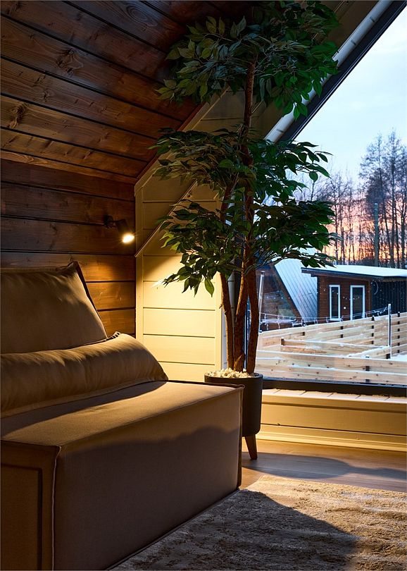 Дома категории «Golden» — наши самые уединенные дома благодаря огороженной территории. В каждом из них вас ждет окружение сосен, елей. Благодаря ограждению, дома будут особенно актуальны для родителей с маленькими детьми и активными питомцами. ТИП РАЗМЕЩЕНИЯ: «Golden» рассчитан до 4 человек и имеет 2 спальных места. Дом двухэтажный площадью 55 кв.м. ЧТО НАХОДИТСЯ НА ТЕРРИТОРИИ ДОМА: • Банный чан под открытым небом. К нему мы предлагаем самый большой выбор наполнений: еловые и фруктовые, с просекко и фруктами для двоих, с игрушками и многие другие виды наполнений. Стоимость банного чана и подробную информацию смотрите на сайте на странице «банный чан». • Баня. Дополнительно к проживанию мы предлагаем не только банный чан, но и баню, которая находится на территории дома. • Мангальная и обеденная зоны. К мангалу идут бесплатно шампура. Дрова, угли и розжиг вы можете приобрести на месте. ДЛЯ ДЕТЕЙ В ДОМЕ: • Кроватка-манеж и стульчик для кормления (бесплатно по запросу) • Защитная сетка-гамак около лестницы на втором этаже ОРГАНИЗАЦИЯ ПИТАНИЯ: • Все наши дома полностью оснащены для самостоятельного приготовления еды. Также, вы можете заказать вкусные блюда с нашей кухни, которые мы доставим прямо к вашей двери или в летнее кафе. Для выбора завтрака, обеда или ужина просто отсканируйте QR-код в вашем доме. Меню дополнительно размещено на территории летнего кафе и на сайте. • А еще, в 6 км от нас находятся «Пятёрочка». РАЗМЕЩЕНИЕ С ЖИВОТНЫМИ: На нашей базе отдыха разрешено со своими четвероногими друзьями, поэтому обязательно берите их тоже! Подробные условия и стоимость проживания с питомцами переходите читать на сайте или уточняйте у менеджера отдела бронирования . А также: мы круто украшаем дома ко дню рождению, по романтическому поводу и девичнику. У нас есть программы парения, услуги массажиста и и различные доп.программы (подробнее переходите читать на сайте или уточняйте у менеджера отдела бронирования). Заезд и выезд бесконтактный.Услуги и удобства