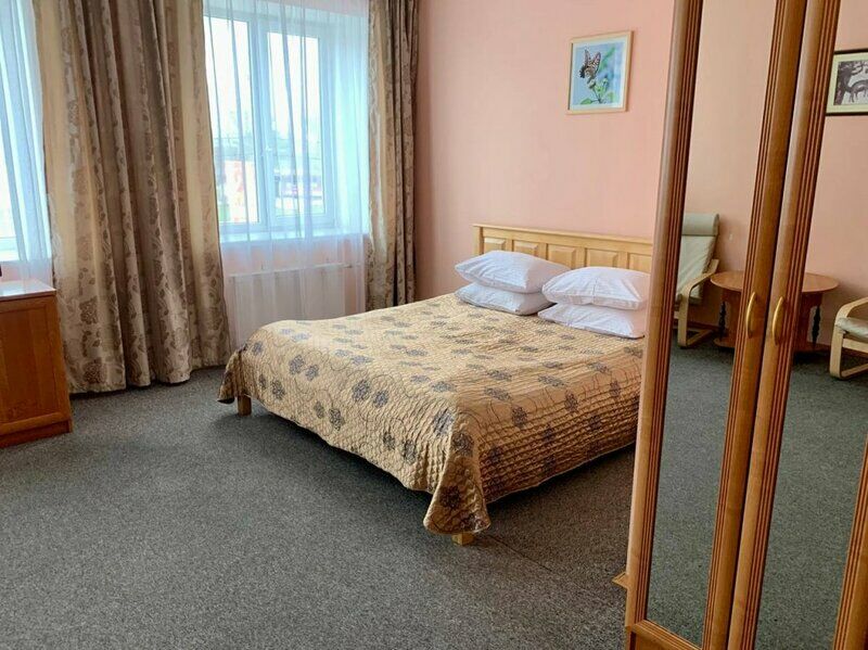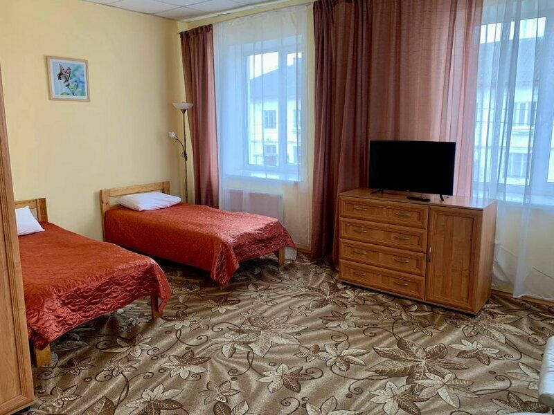 Путешествие с семьейКомфорт и отдых.Замечательная гостиница: комфортный двухместный номер, кровать общая, ковролин, удобно пользоваться душевой кабинкой, везде теплый настил на полу, освещённость нормальная, по три белых полотенца для каждого, это очень приятно. В номере есть чайник, правда, не мешало бы, чтоб розетка была рядом возле стола. Имеются чашки, стаканы, тарелочки. В общем, очень приятно, тем более, что доступная цена очень привлекает. Спасибо работникам, руководителю, мы не первый раз в этой гостинице, всегда будем заезжать сюда.