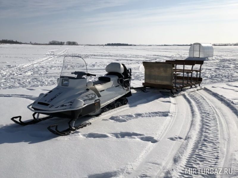 В зимнее время года вы можете прокатиться на санях прицепленном к снегоходу.