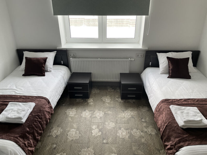 Однокомнатный номер с двумя раздельными кроватями для комфортного проживания одного-двух человек, или семьи с ребенком. Два основных места + 1 дополнительное место (оплачивается дополнительно). Окна номера с видом на сад.