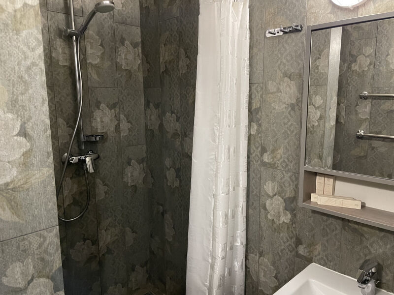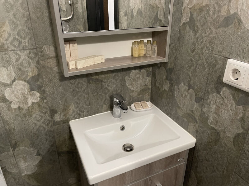 Ванная комната, Душ, Душевая кабина, Фен, Гигиенические средства, Раковина, Унитаз.