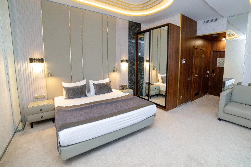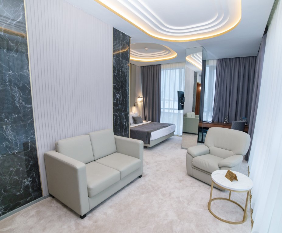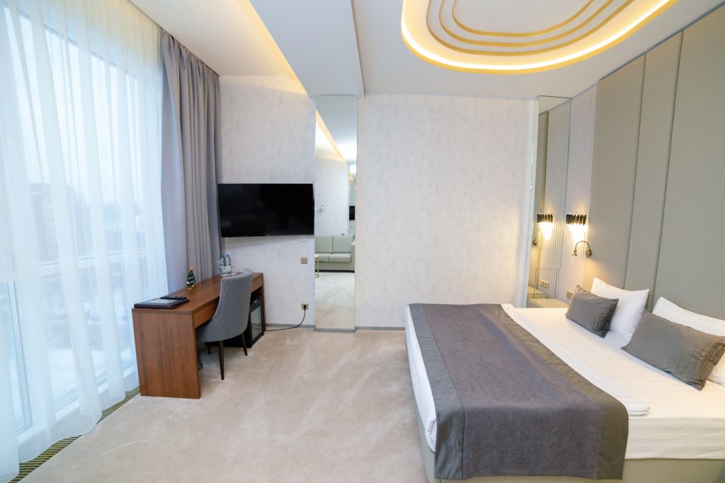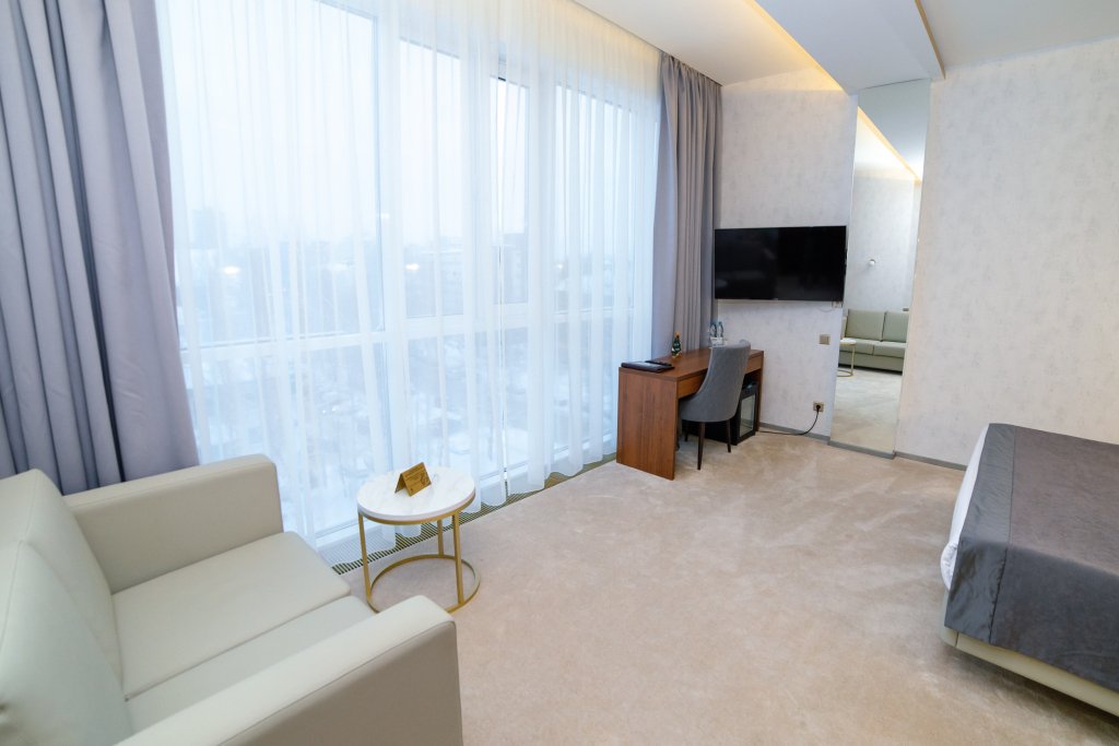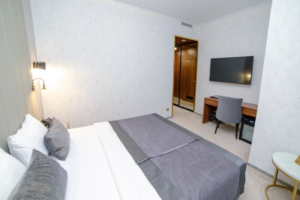 Номер уютно обставлен и оснащён необходимым, чтобы отдохнуть после долгого и насыщенного дня. Имеются телевизор. Перечисленные услуги есть не во всех номерах.