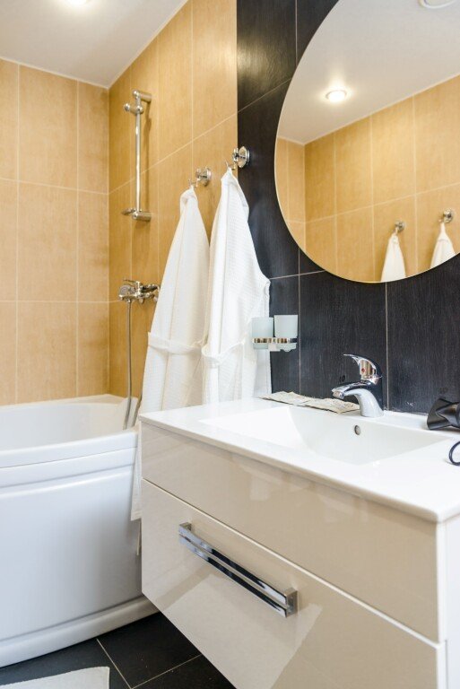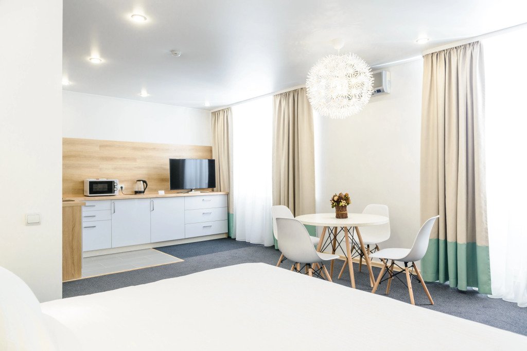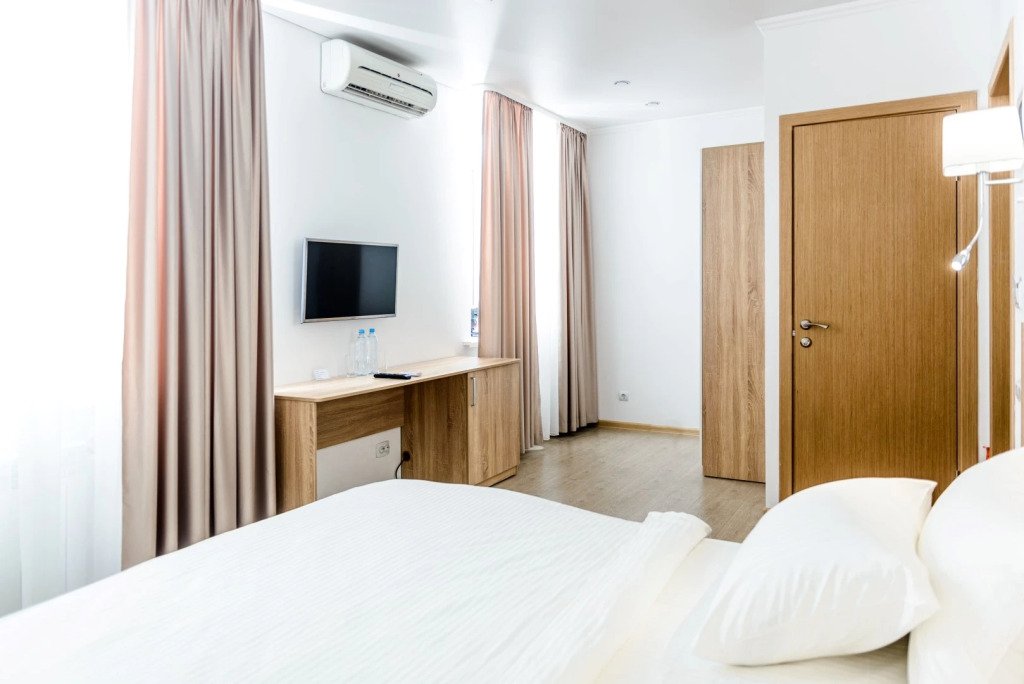 Чтобы вы могли отдохнуть после долгого дня, в номере есть телевизор и халат. Оснащение зависит от выбранной категории номера.
