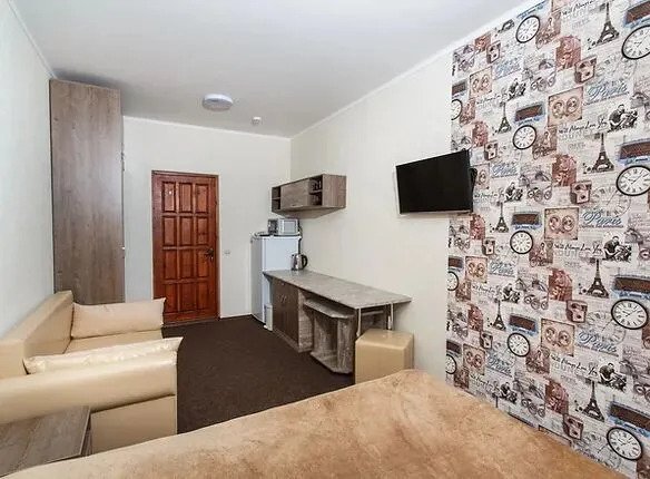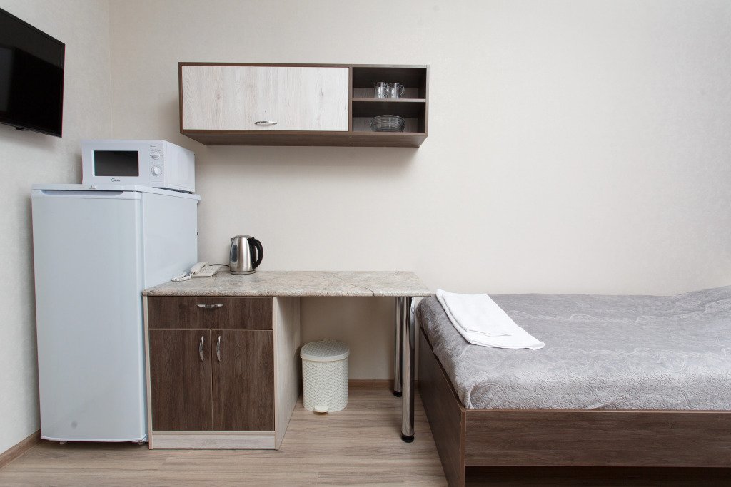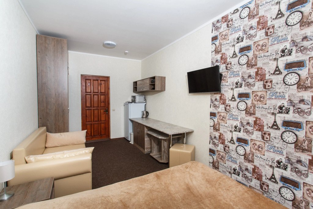 Номер уютно обставлен и оснащён необходимым, чтобы отдохнуть после долгого и насыщенного дня. Имеются телевизор. Оснащение зависит от выбранной категории номера.
