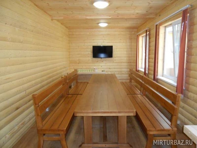 Оснащение: парная, душ, комната отдыха с музыкальным центром, спутниковым ТВ, с большими столами для торжества, посуда, раздевалка, сан. узел.