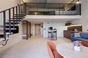 Зал в стиле минимализм, создает атмосферу уюта и комфорта. Окна с видом на пруд, наполняют зал естественным светом, создавая впечатление легкости и простора.