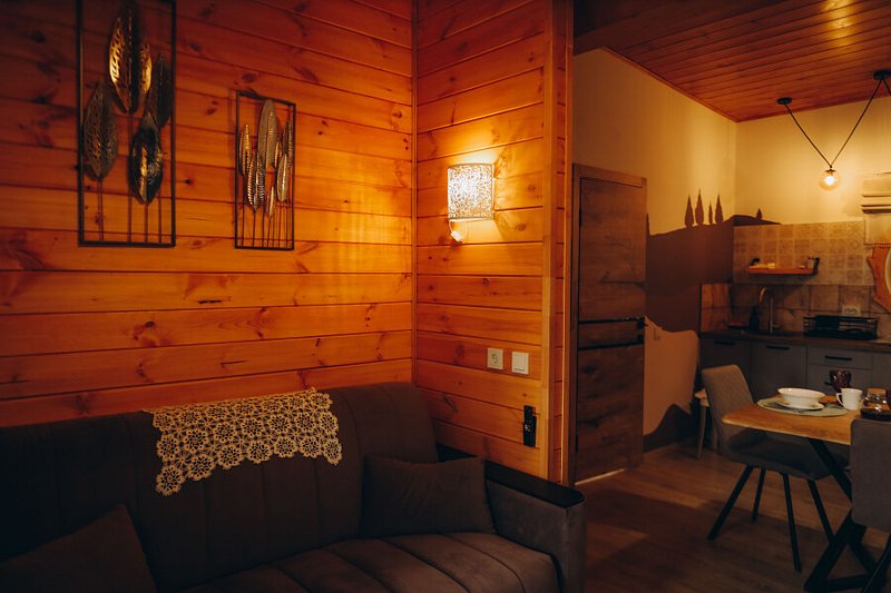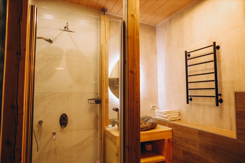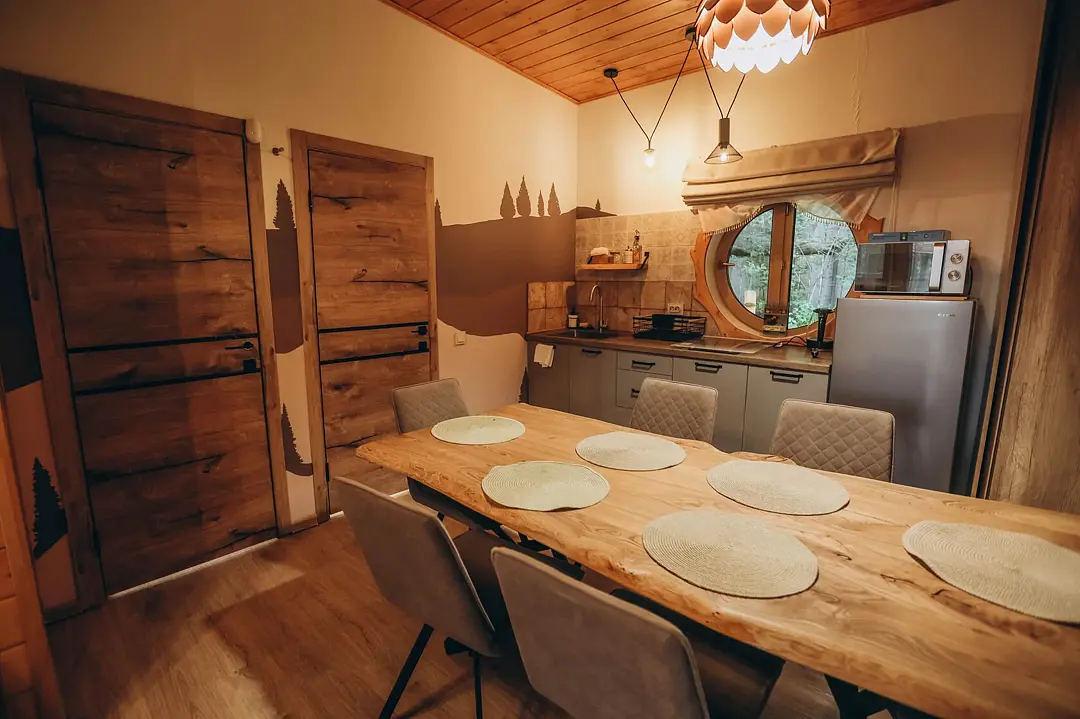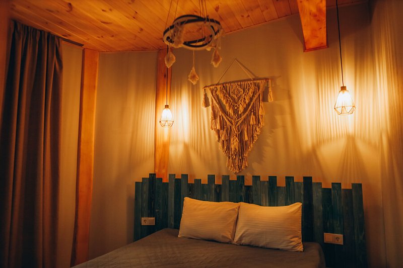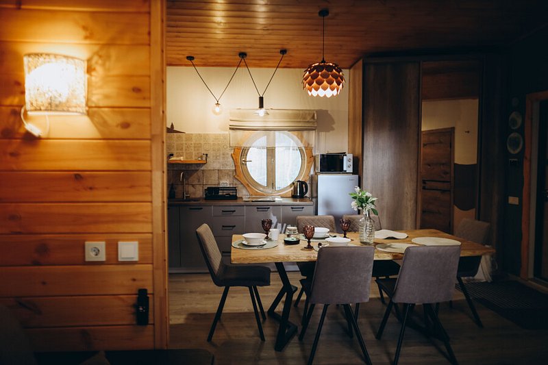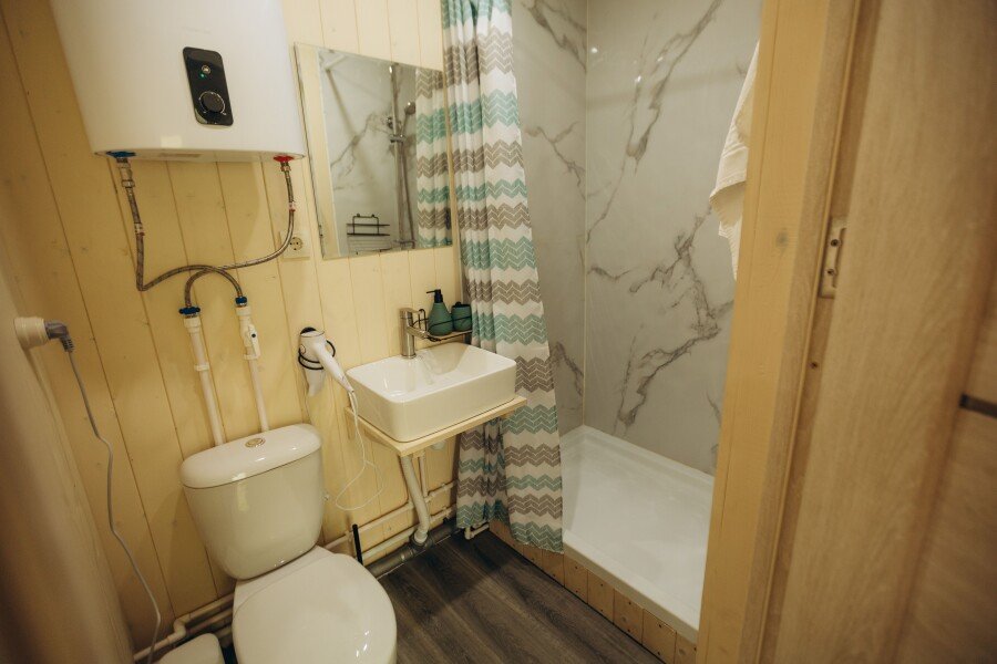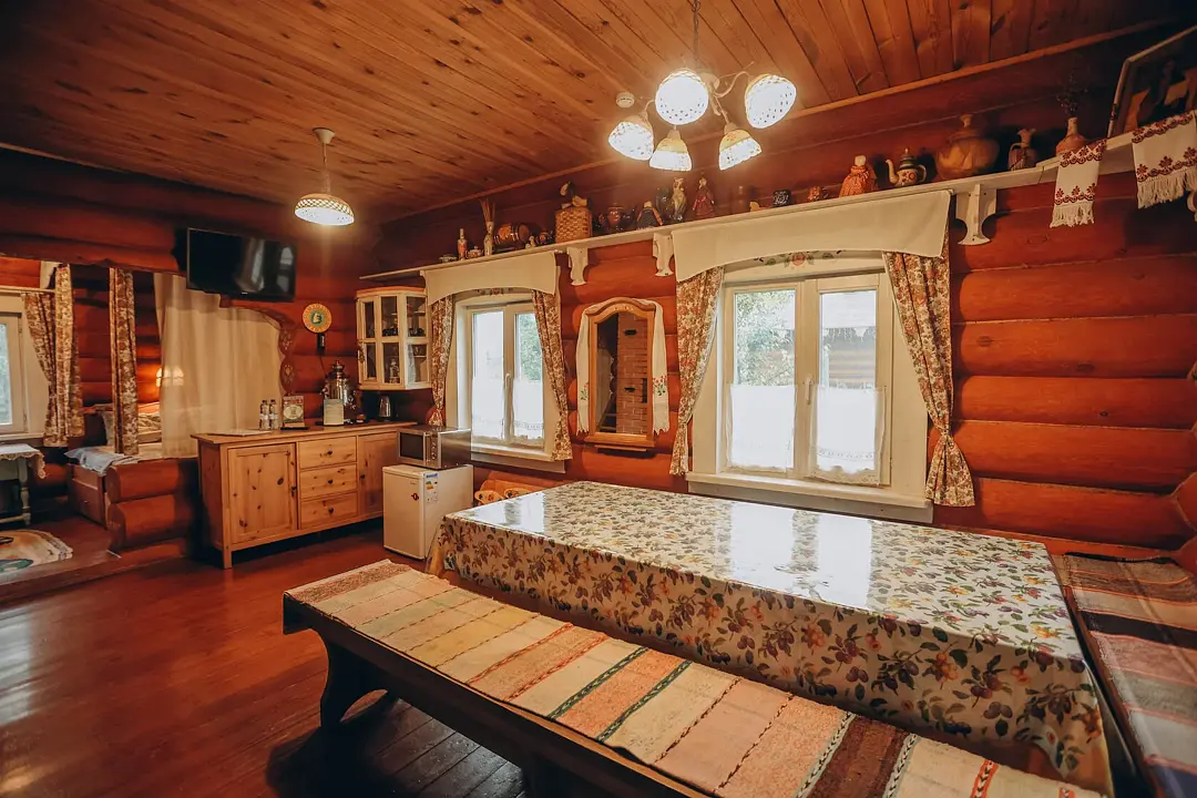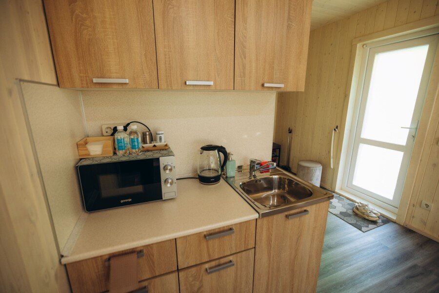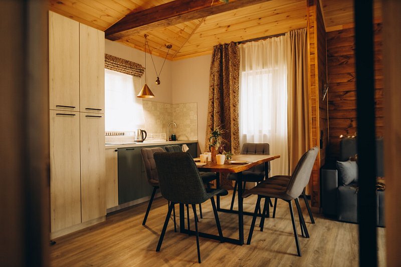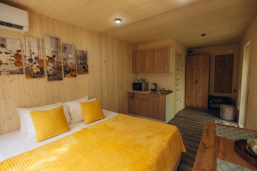 В каждом доме есть все необходимое для комфортного отдыха: кухонная зона, ТВ, Wi-Fi, а в некоторых — современные удобства в виде санузла и душа.