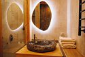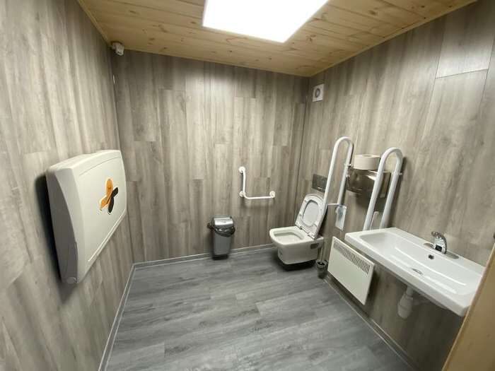 Рядом с беседками и шатрами находятся благоустроенные санузлы с комнатой матери и ребенка, инвалидным туалетом. В раковинах бежит вода из артезианской скважины, которая полностью пригодна для использования в пищевых целях. Туалет открыт круглосуточно.