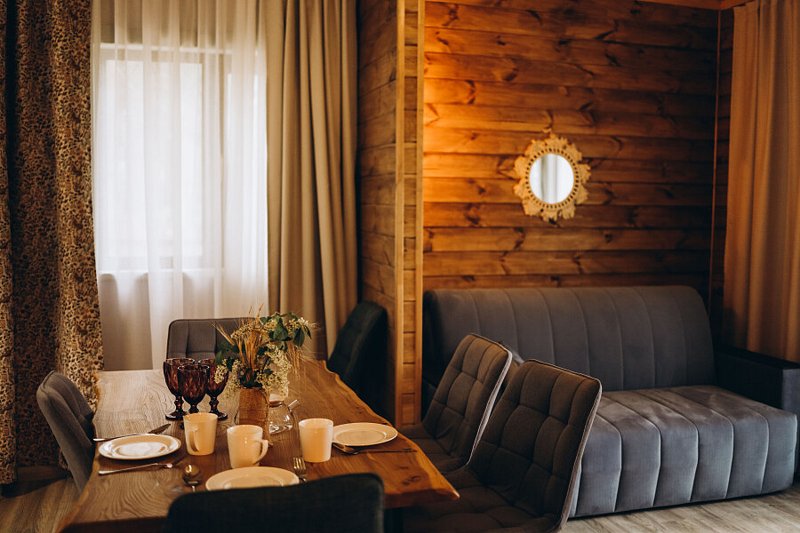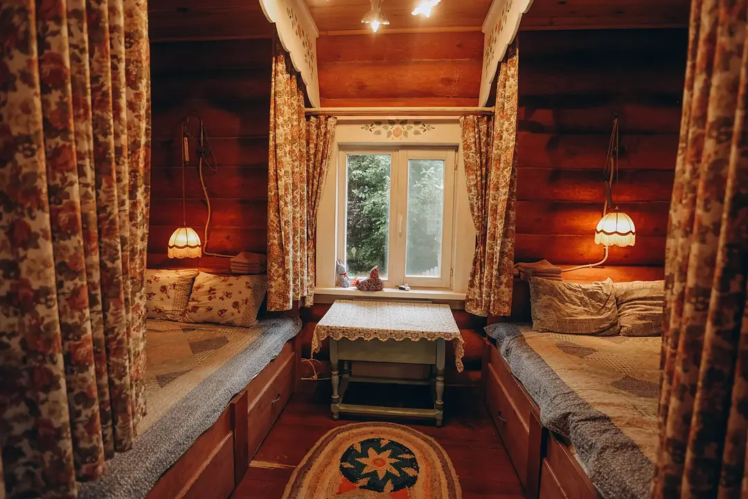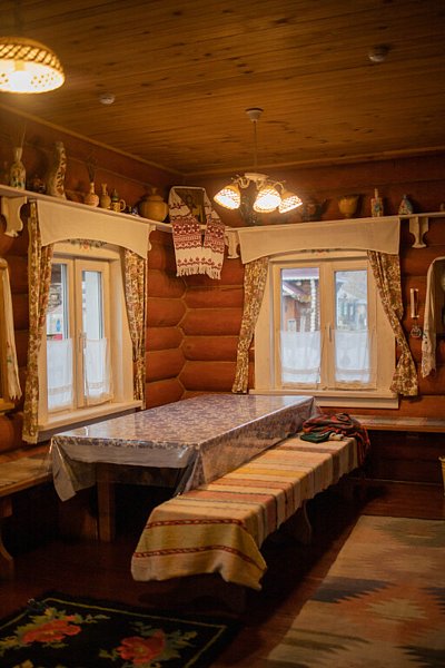 Дом полностью как у бабушки в деревни со всем интерьером и соответствующими удобствами.