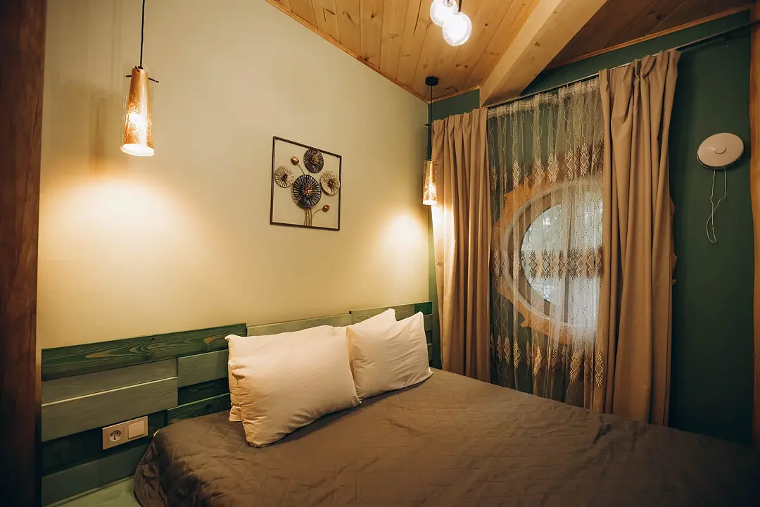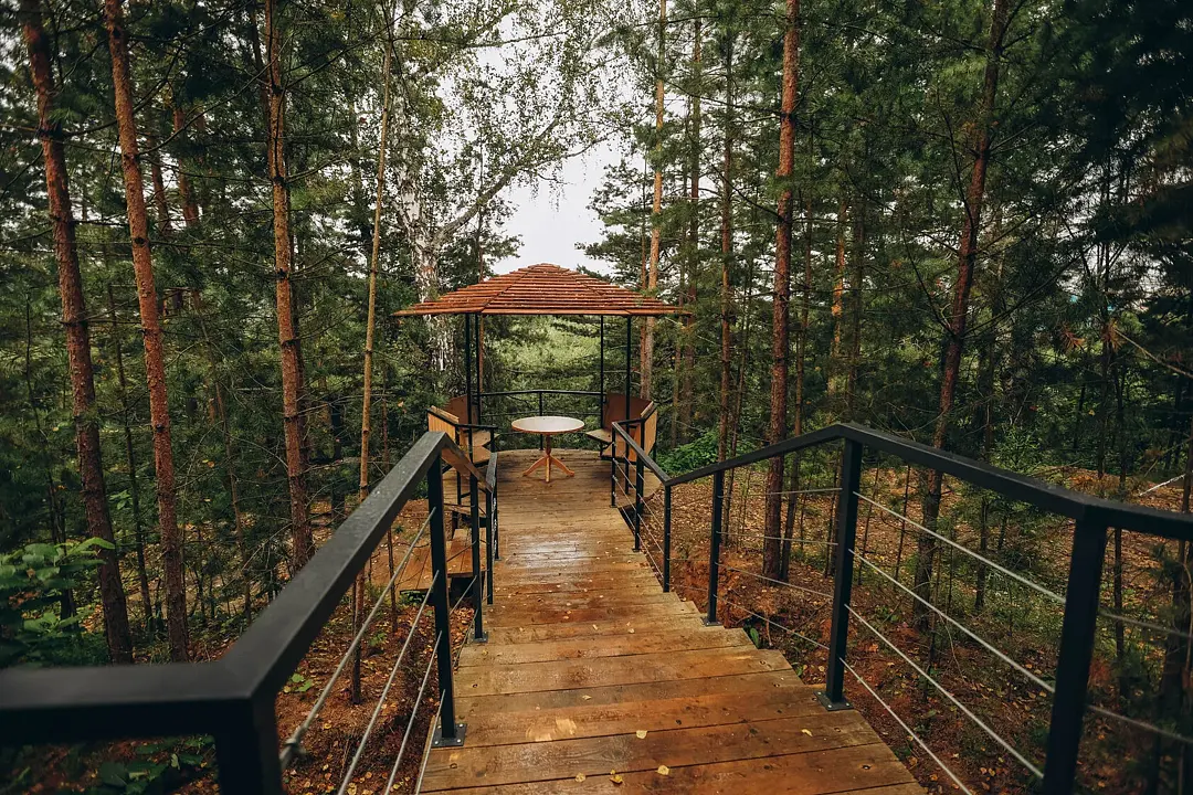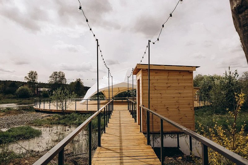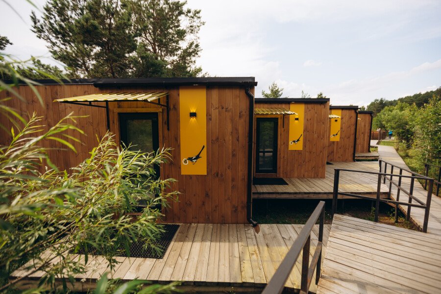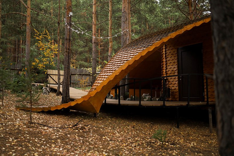 На просторной территории парка, охватывающей 23 гектара, расположились 7 уютных домиков. Два из них — традиционные Арамильский и Пермский гостевые дома — погружают гостей в атмосферу русского быта с печью и аутентичной обстановкой. Для любителей комфорта в современном стиле предлагается выбор из пяти домиков с уникальным дизайном, один из которых расположен на дереве!