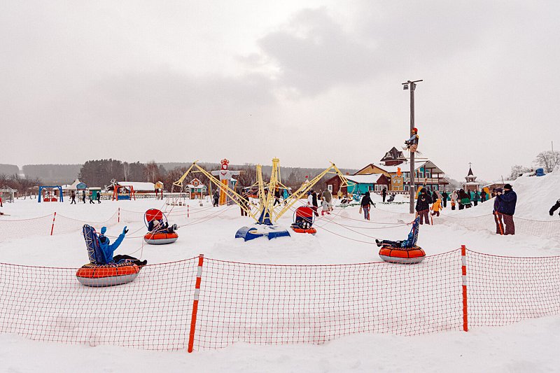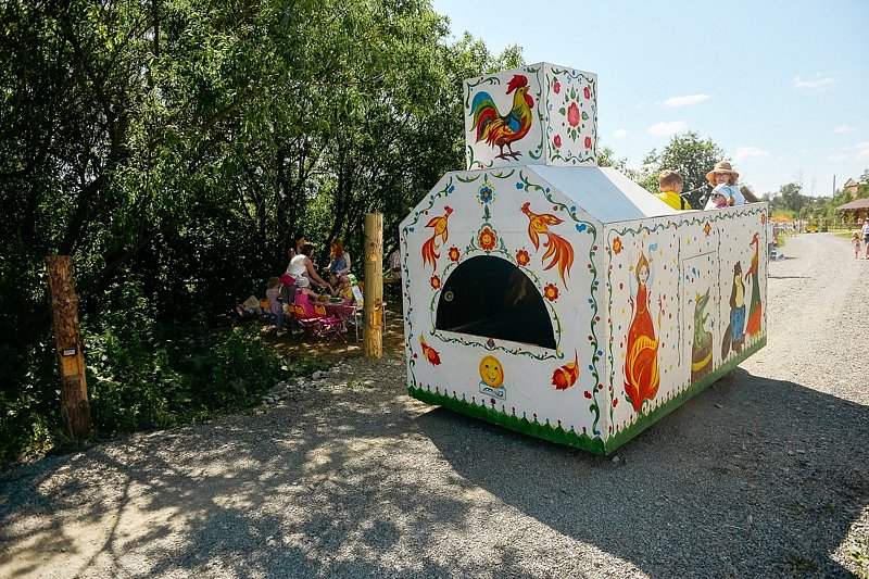 Развлечения в Парке Сказов на любой вкус: тематические объекты, летний термальный бассейн, сауна и баня, а зимой — горка, каток и тюбинг. Для юных гостей оборудована детская площадка, где можно вдоволь порезвиться.
