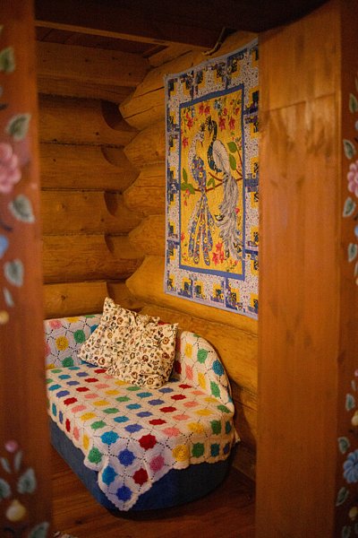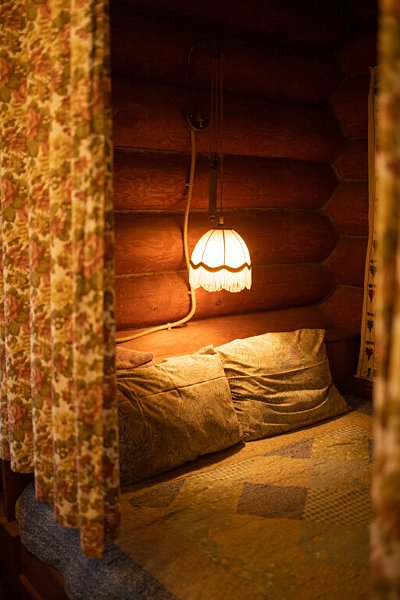 Отопление: печное на дровах. 2 двуспальные кровати и полати. Водоснабжение в доме отсутствует, есть рукомойник с подогревом. Туалет: уличный. Есть дополнительные подушки и одеяла.