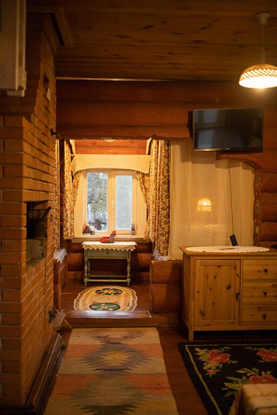 Отопление: печное на дровах. Двуспальная кровать, раскладной диван и детский диван. Водоснабжение в доме отсутствует, есть рукомойник с подогревом. Туалет: уличный. Есть дополнительные подушки и одеяла.