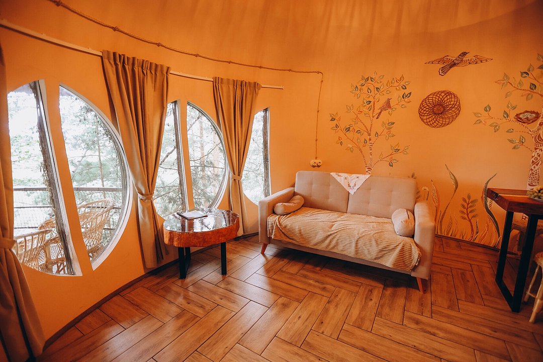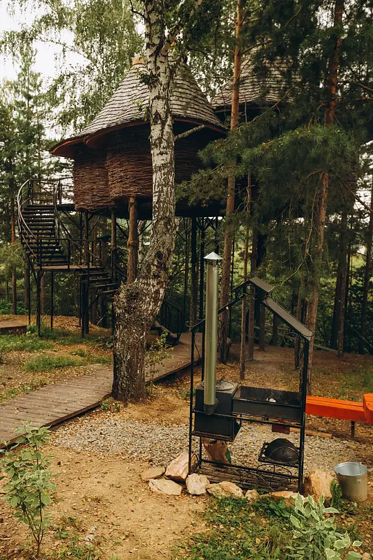 Дом на дереве имеет покачивание, учитывайте данный фактор при бронировании. Высота дома над уровнем земли: 6 метров.