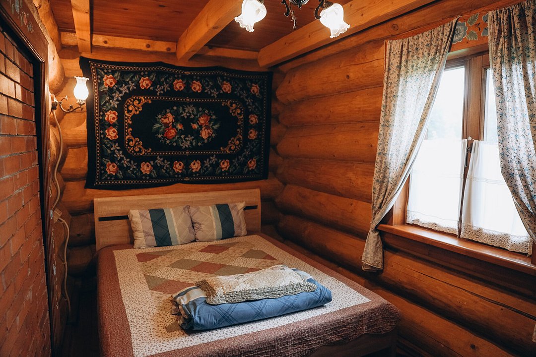 Двухместный гостевой дом Хатка Ондатры с балконом и с красивым видом из окна двуспальная кровать