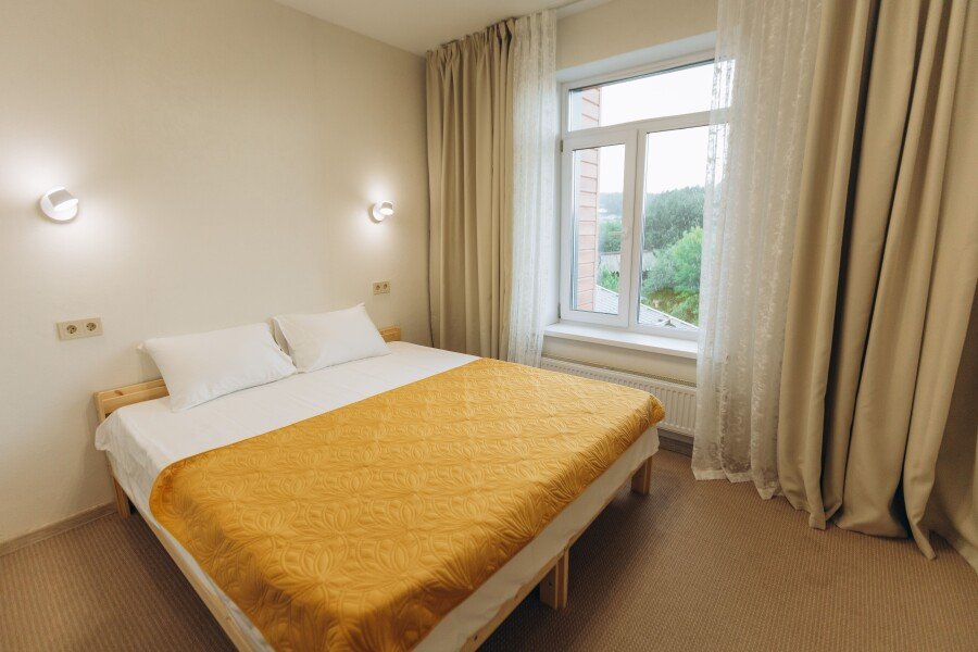 Двухместный гостевой дом Пермский с красивым видом из окна двуспальная кровать