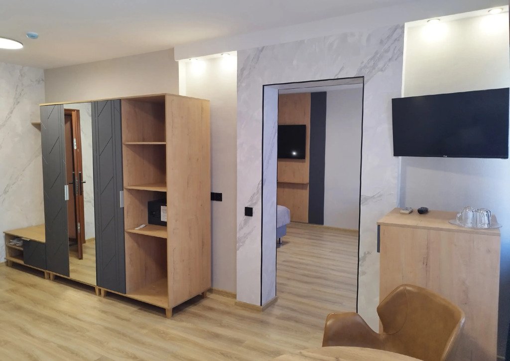 Чтобы вы могли отдохнуть после долгого дня, в номере есть телевизор и халат. Перечисленные услуги есть не во всех номерах.