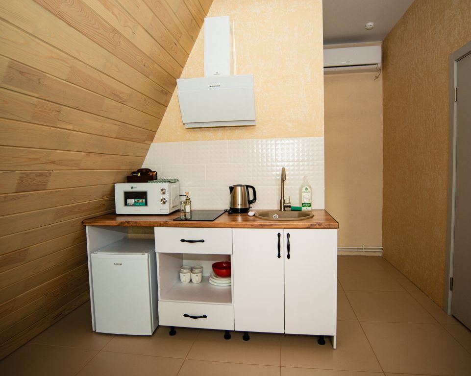 Четырехместный люкс с матрасом на антресоли. Идеально для семейного тихого отдыха для 4 человек. При заезде залог наличными — 5000 ₽, с маленькими животными залог — 20000₽. Возвращается при выезде. Заезд в 15:00, выезд до 12:00. Курение в коттеджах строго запрещено!