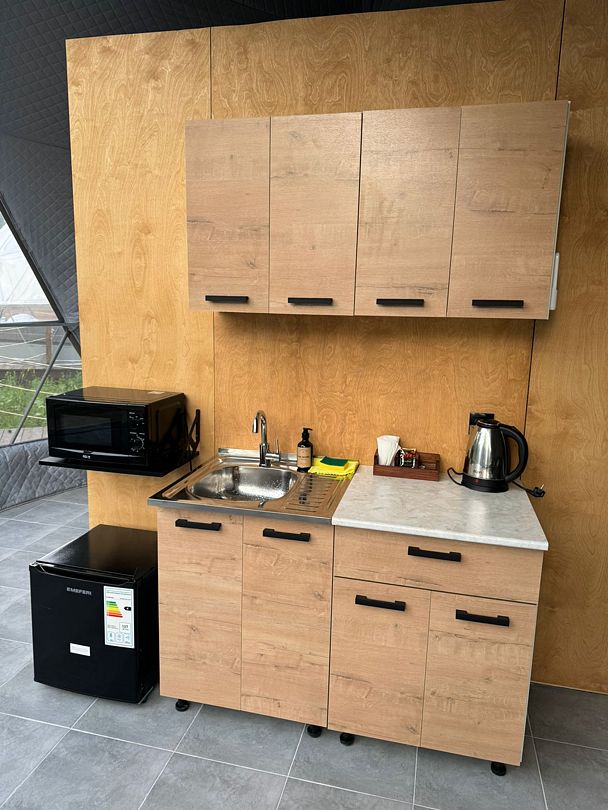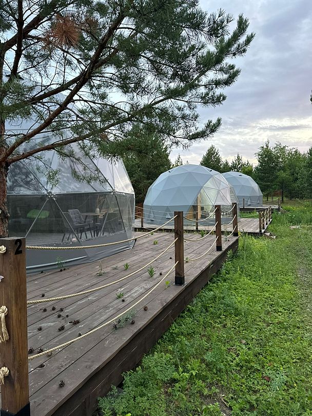 🌲В Рамено (15 минут езды от центра Сызрани в лесу рядом в пяти минутах езды от благоустроенного пруда) пять уютных круглогодичных геокуполов на 4-5 человек, оборудованных всем для комфортного отдыха: кухня с мини-холодильником, микроволновкой, столовой посудой, чайником, стол со стульями на 4 человека, ванна с феном, гелем для душа, шампунем, мылом, Wi-Fi, водонагреватель, кондиционер, двуспальный раскладной диван, двуспальное место на антресоли, постельное белье, полотенца. При необходимости возможно доставить детскую кроватку-манеж.