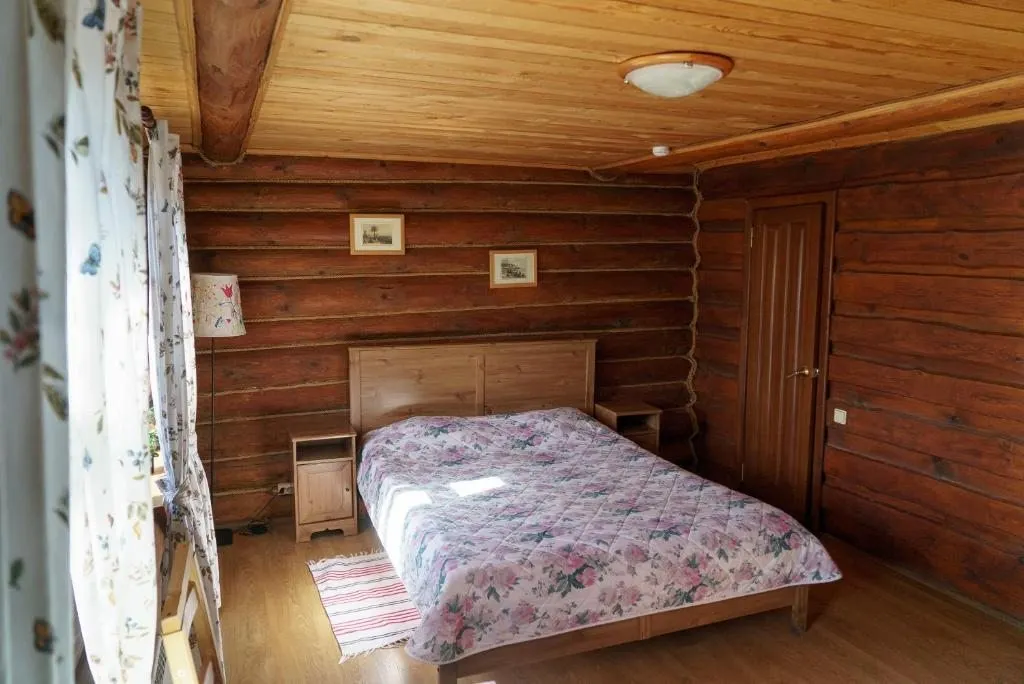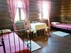 Однокомнатный коттедж из сруба, рассчитанный на размещение трех человек со всеми удобствами. В коттедже есть одна односпальная кровать и одна двуспальная кровать.