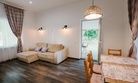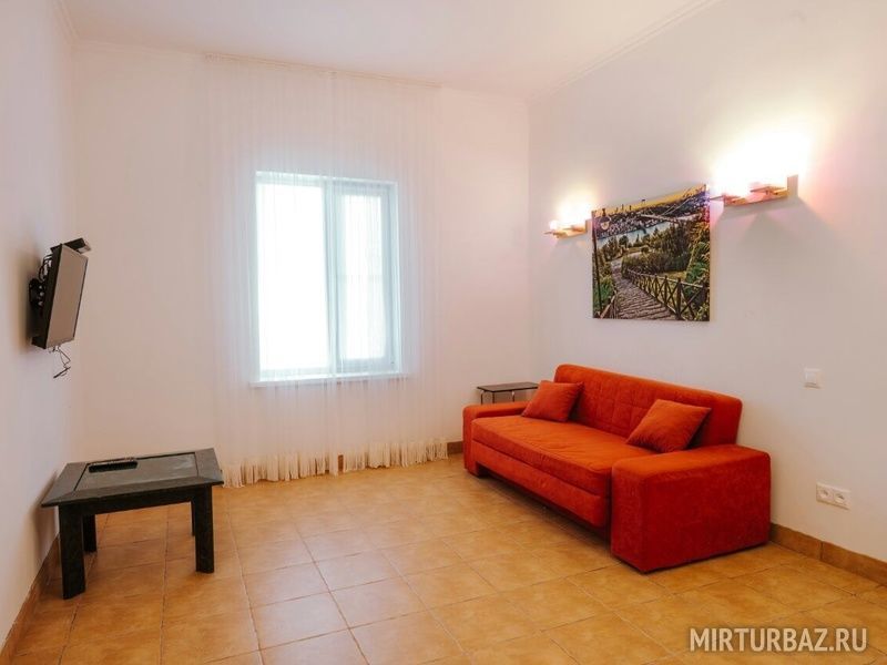 В коттедже одна спальня, кухня, гостиная, санузел, коттедж оснащен всем необходимым для проживания, холодильник, варочная панель, микроволновая печь, эл. чайник, сплит система, холл, горячая вода, посуда, из коттеджа есть выход на террасу полностью укомплектованной садовой мебелью, мангальная зона.