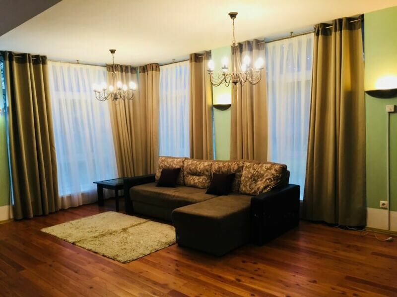 В коттедже банкетный зал на 15 человек, три спальни, кухня, каминная зона, два санузла, из коттеджа есть выход на террасу полностью укомплектованной садовой мебелью, мангальная зона.