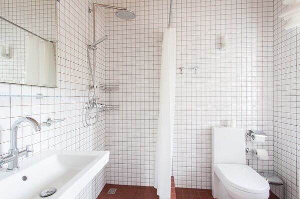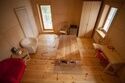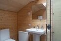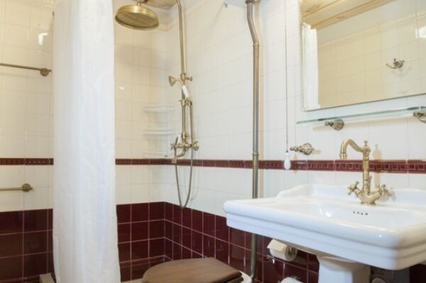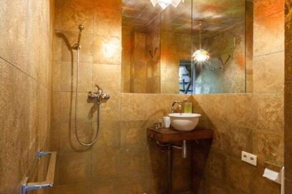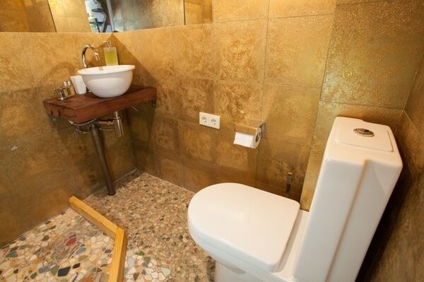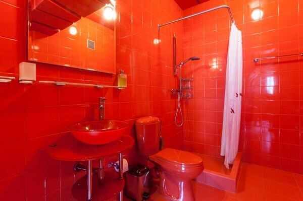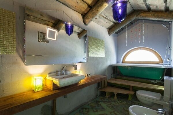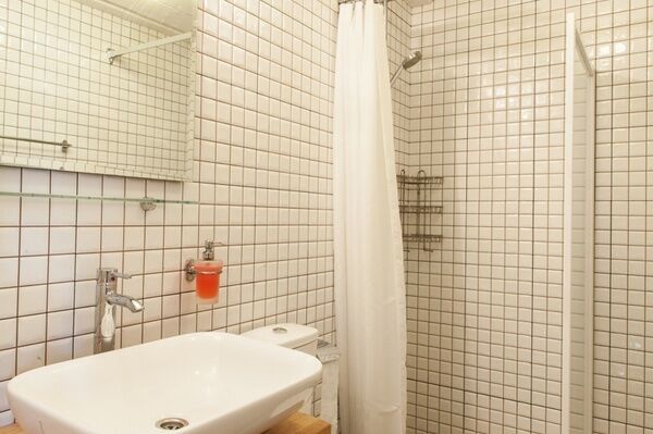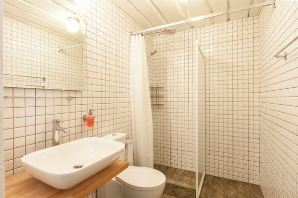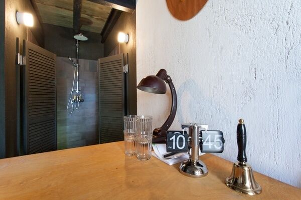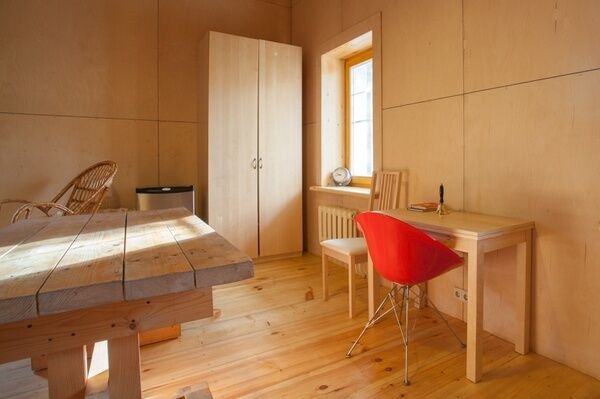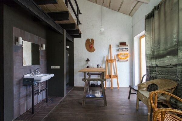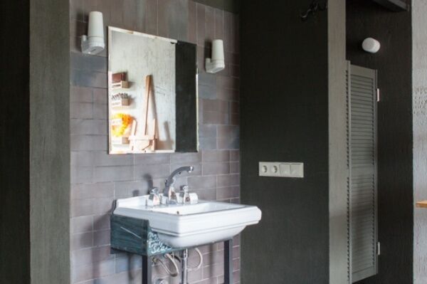 Раковина и душ объединены с остальным пространством комнаты - по образцу маленьких советстких профессорских дач. Можно одновременно наслаждаться водными процедурами и видом из окна.