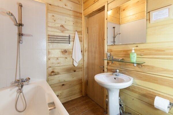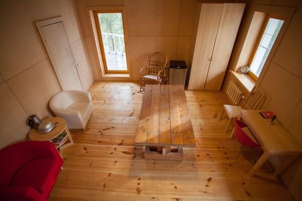Особого внимания заслуживает второй этаж комнаты, где можно принимать ванну, любуясь соснами.