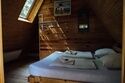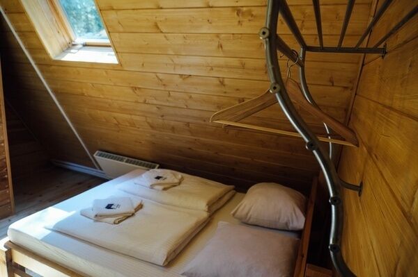 Домик представляет собой пространство с двумя изолированными комнатами и совмещенным санузлом. В каждой комнате большая двуспальная кровать, холодильник, посуда. Около каждого домика мангальная зона.