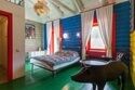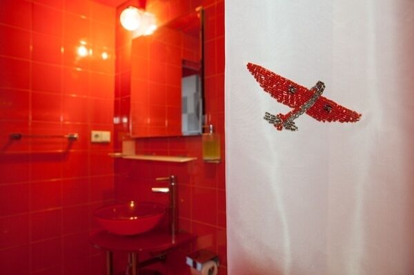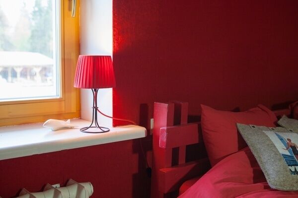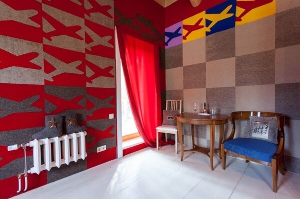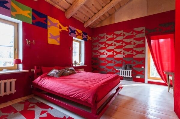 Красно-серая комната, оформленная знаменитыми самолетами и звездами, заряжает энергией. Даже тот, кто всю ночь танцевал у костра, проснется здесь бодрым.