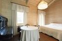 Аутентичный интерьер внутри и лес снаружи. Поразмышляйте о вечном лежа на печи или насладитесь застольем на собственной террасе.Таежный домик №2 находится левее таежного домика номер один. Или правее, если стоять с другой стороны. И печка в нем - красная.