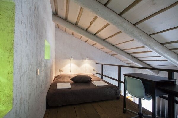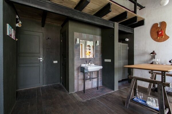 Перед вами современная мастерская художника, комната для свободных творческих личностей. Каждый сантиметр здесь рационально использован.
