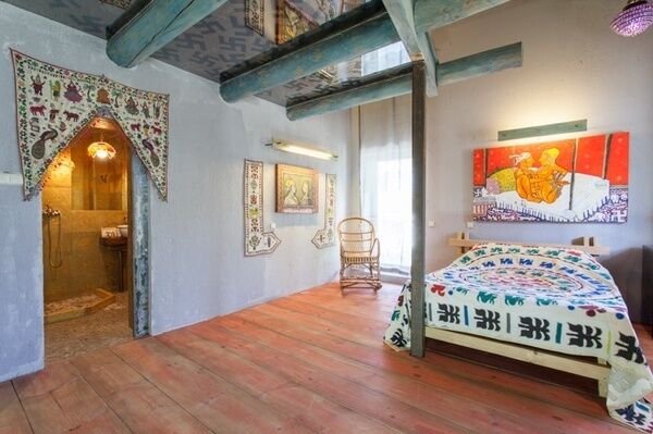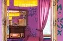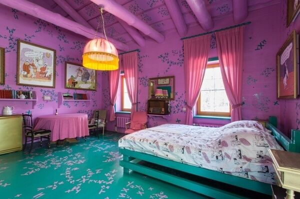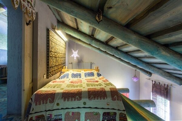 Интрерьер комнаты воплотил в себе яркие впечатления автора от поездки в Индию. Использованные в оформлении предметы (статуи, шторы из бисера и многое другое) были привезены из путешествия лично автором.